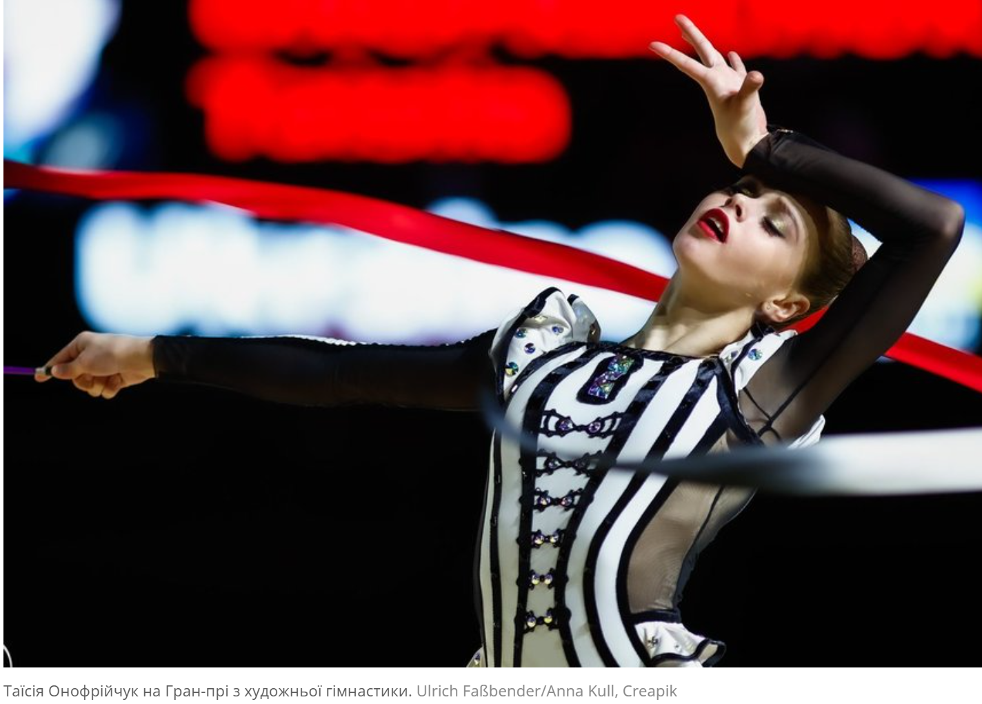 Шістнадцятирічна Таїсія Онофрійчук стала абсолютною чемпіонкою особистих змагань, а загалом команда України здобула 9 нагород на третьому етапі Гран-прі з художньої гімнастики у французькому Тьє. Про це повідомляє «Комерсант Український» з посиланням на Національний олімпійський комітет України.