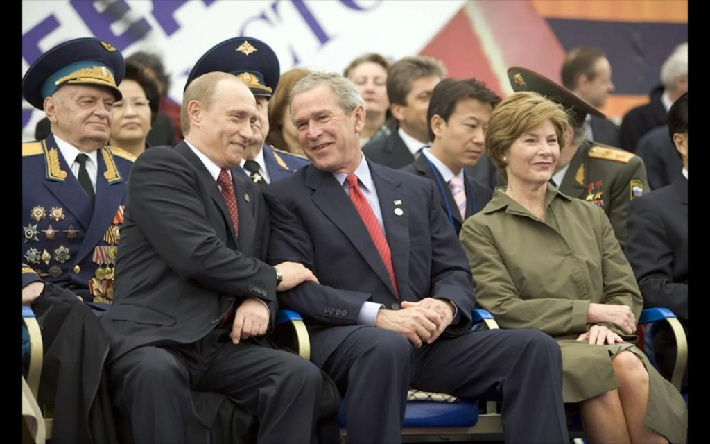 Джордж Буш-молодший очолював США у 2001–2009 роках — до анексії Криму та війни проти України, тому прямого російсько-українського конфлікту в сучасному розумінні тоді ще не було. Водночас саме на цей період припало активне укріплення української незалежності у післяхолодновоєнному світі.