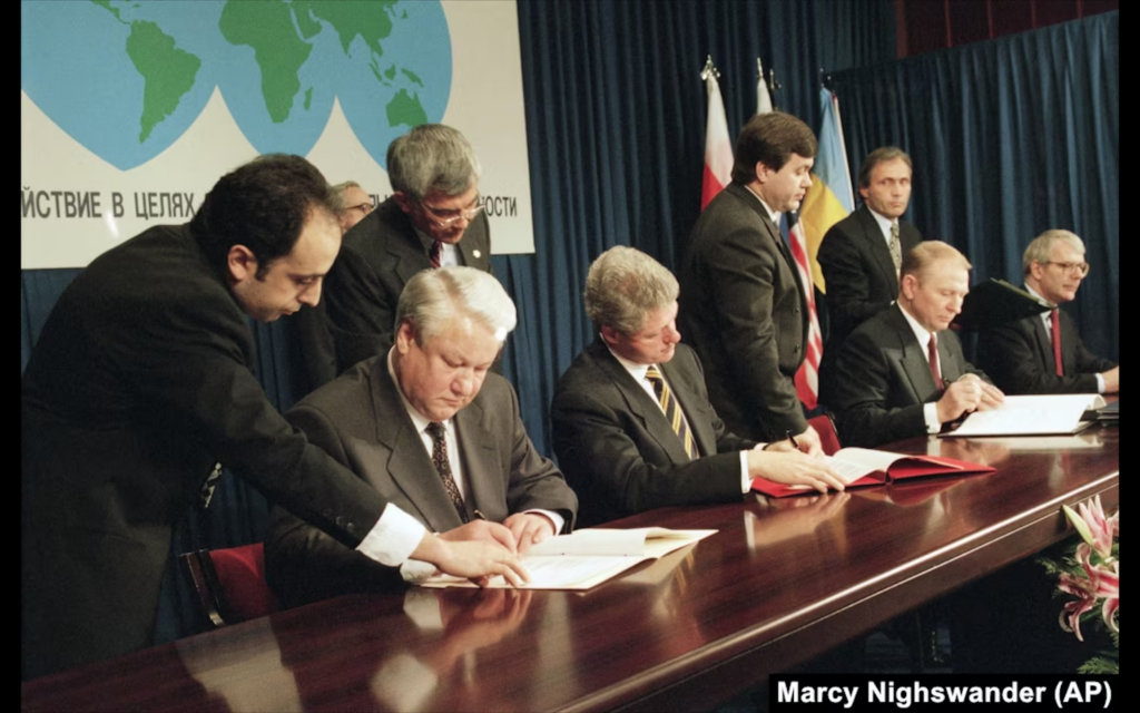Україна відмовилася від ядерної зброї, успадкованої від СРСР, у 1990-х роках та зобов`язалася стати без’ядерною державою в обмін на гарантії безпеки.