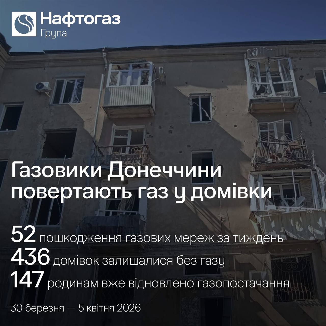 Протягом одного тижня на Донеччині зафіксували 52 пошкодження газових мереж, спричинених обстрілами. Газовики працюють над відновленням постачання у прифронтових містах, часто — у складних та небезпечних умовах.