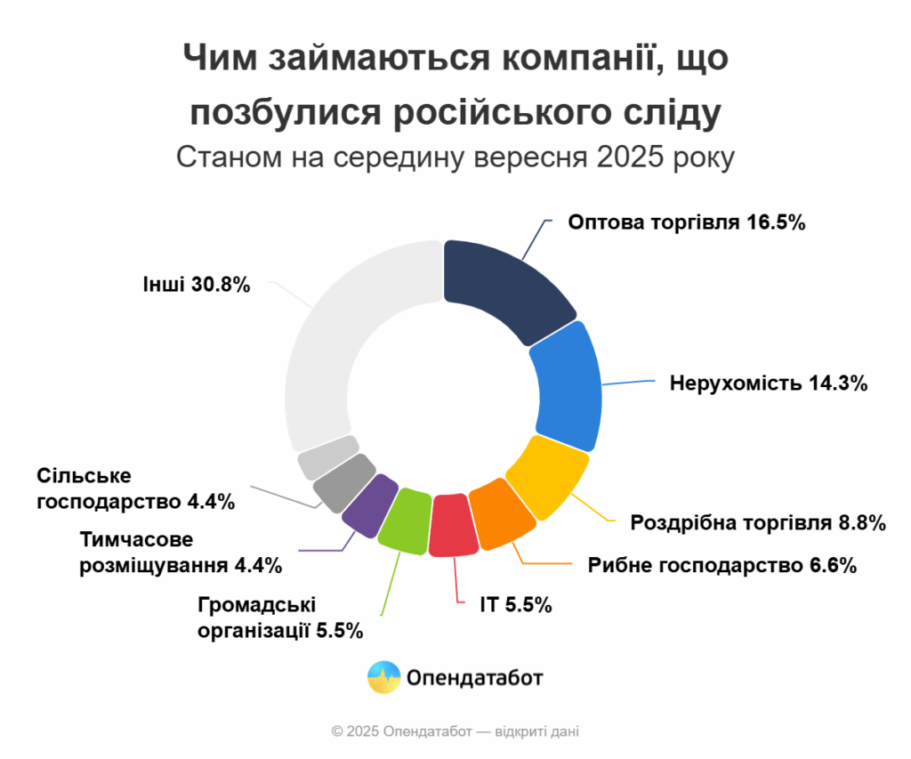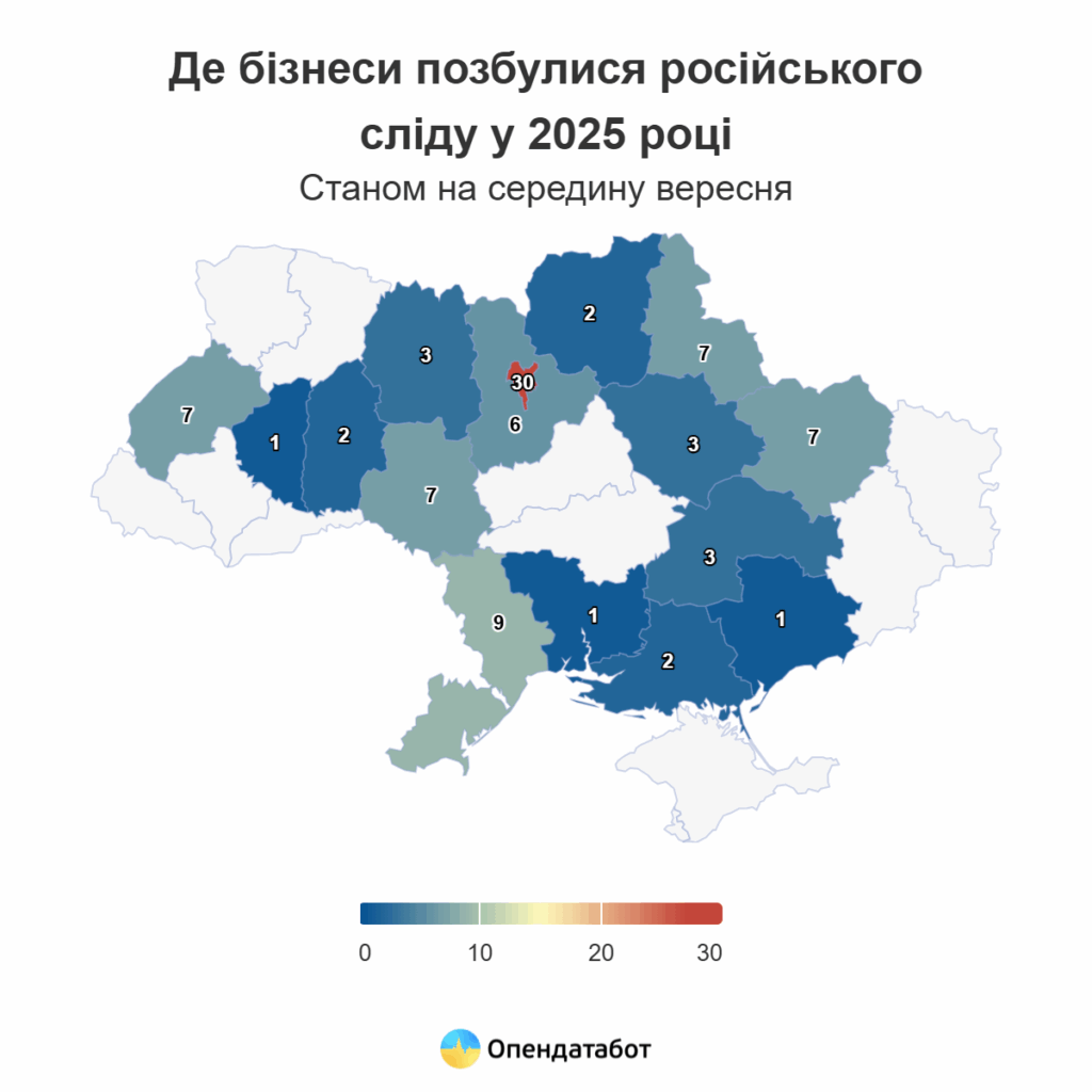 Третина компаній, що позбулися російського сліду, працює у Києві — 30 бізнесів.