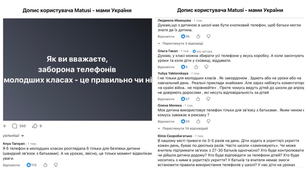 “Телефон — це біда, особливо для дітей. Тому, так”, — пише одна з учасниць обговорення.