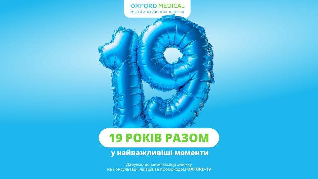 16 вересня мережа клінік «Оксфорд Медікал» відзначає 19-й день народження та дарує знижку 20% на консультації всіх лікарів для пацієнтів київських клінік, інфор…