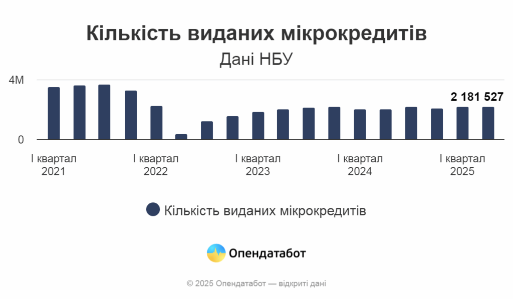 In the second quarter alone, 2.18 million microloans were issued. The number of loans issued remained stable, but the average amount increased by 9% to UAH 6,029. Compared to 2024, this figure remained virtually unchanged.