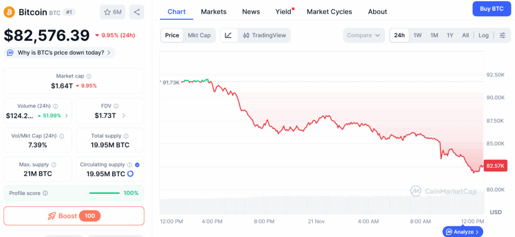 Bitcoin fell to $82.5 thousand: what happened to the cryptocurrency market and why investors are panicking