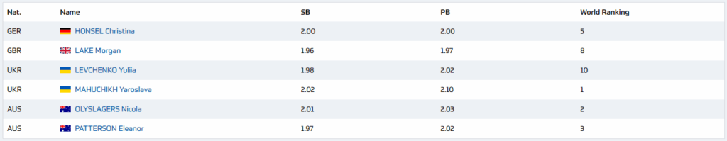 Yulia is ranked 10th in the world ranking and has the fourth result of the season among all finalists, so she is not among the favorites of the final competition. However, Levchenko’s personal record is 2.02 meters, and in the current season this is the highest among all the athletes who will participate in the finals (it was set by Yaroslava Maguchikh). Therefore, our jumper has a very good chance to win.