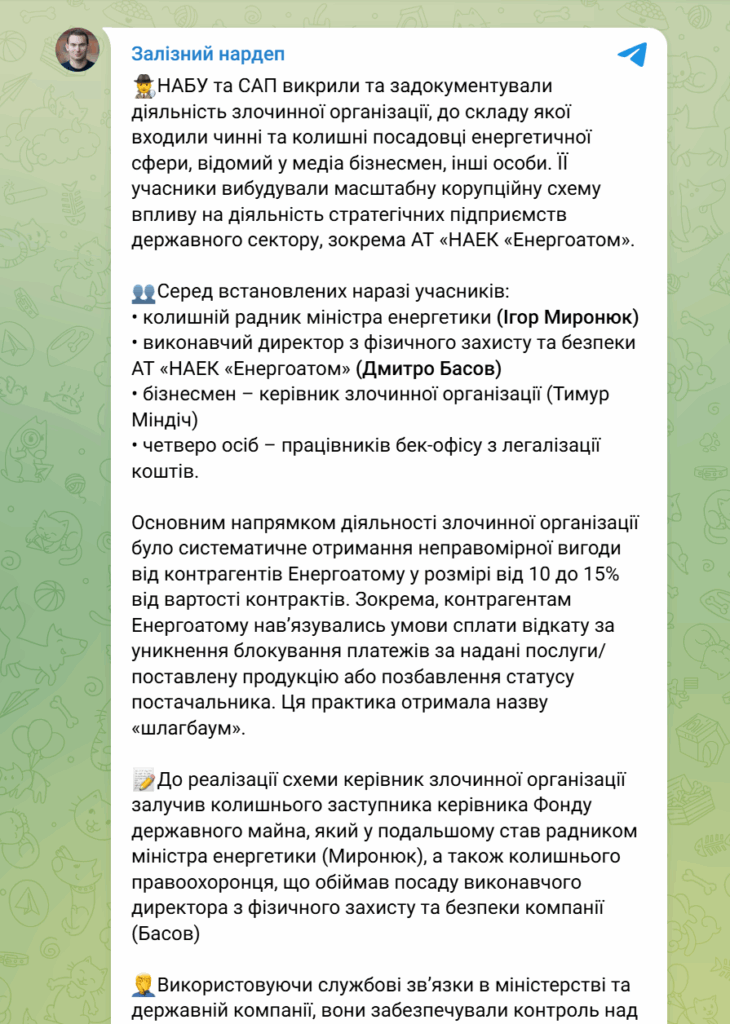 At the same time, NABU reported only on searches at Energoatom, without mentioning Mindich or Halushchenko.