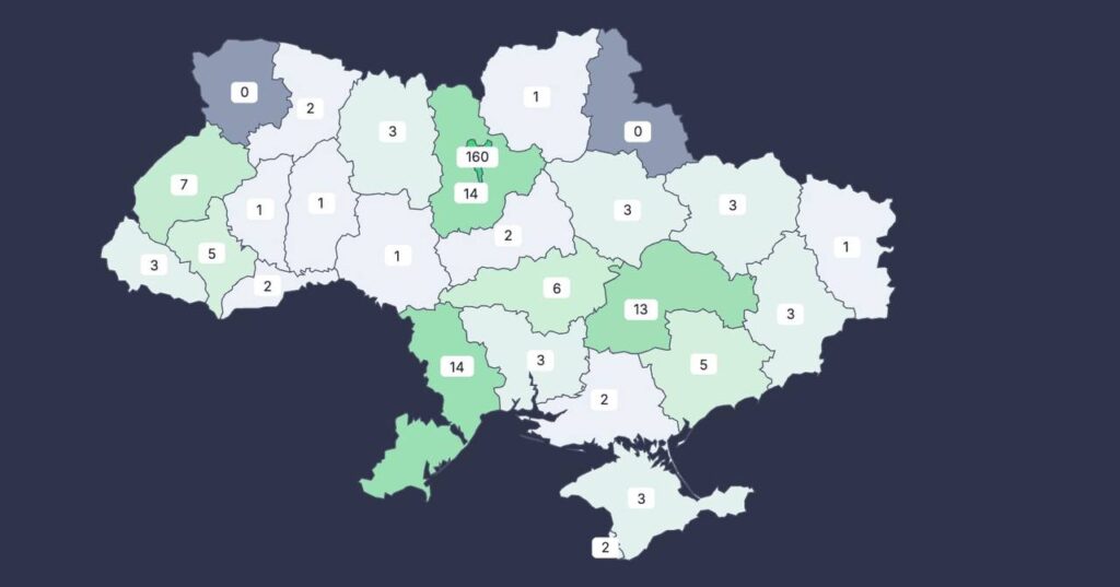 Activity is also recorded in Lviv, Odesa, Kharkiv, and Dnipropetrovs’k regions.