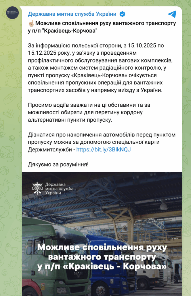 According to the State Border Guard Service, from October 15 to December 15, 2025, truck traffic may be hampered due to preventive maintenance of weighing systems and the installation of radiation monitoring systems.