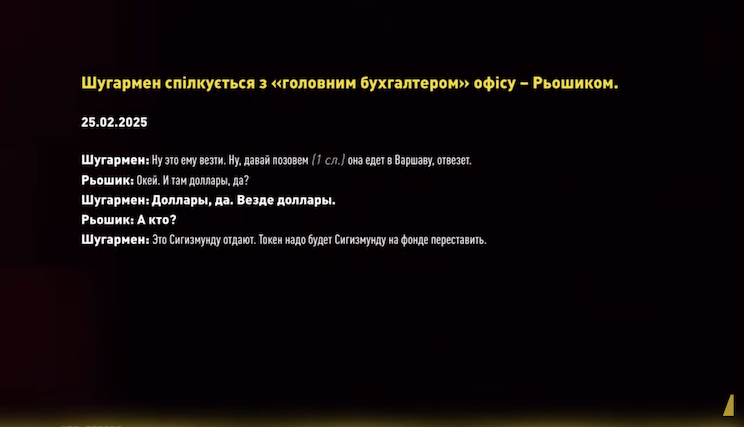 The black ledger recorded the share of funds for Sigismund. Cryptocurrency was used for laundering, with the funds going to the fund or being issued in cash to Herman Galushchenko’s ex-wife.