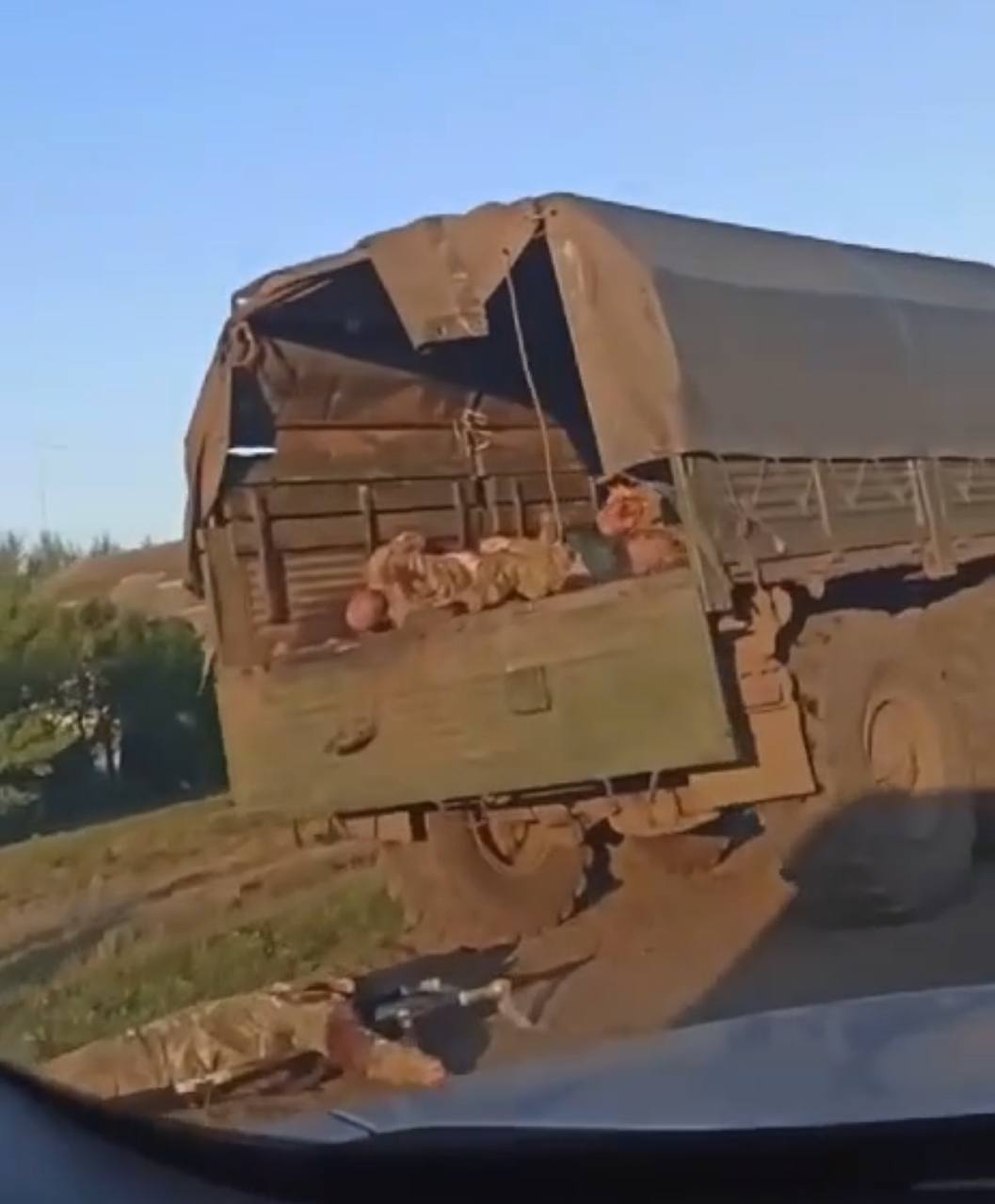A video was posted on Ukrainian and Russian Telegram channels showing the aftermath of a convoy of Russian vehicles in the Kursk region near Rylsk. The video sh…