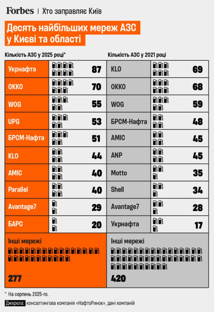 Parallel, which acquired the Motto chain and immediately gained 40 filling stations in Kyiv and the region, has also taken its place among the leaders. This is an example of how the acquisition of assets can quickly become one of the top players in the fuel business.