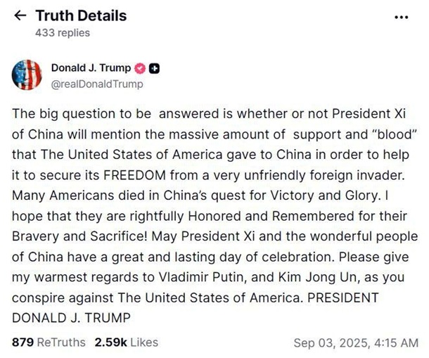 Beijing’s Parade and the US Political Signal: Trump’s Reaction to the Alliance of China, Russia and the DPRK