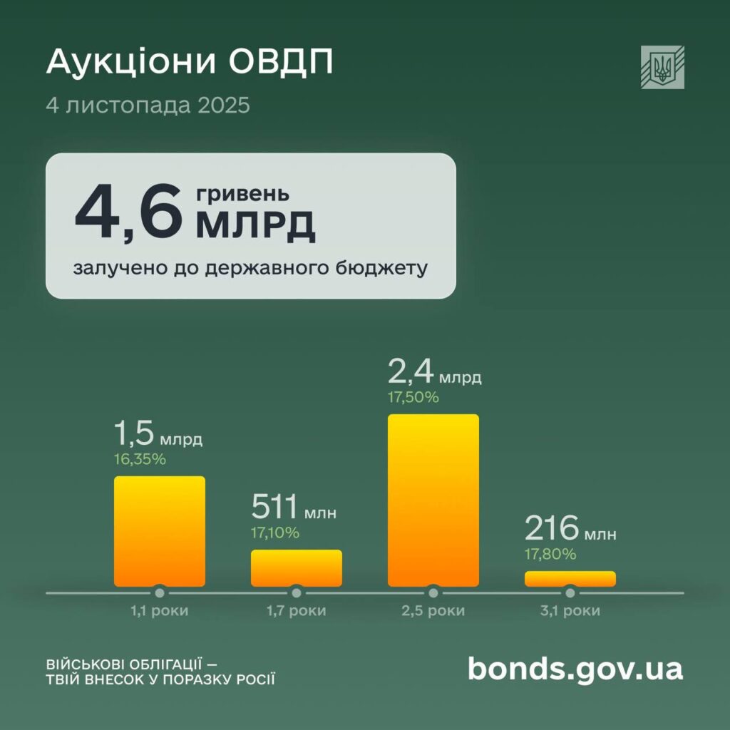 In addition, the Ministry of Finance offered investors longer bonds for 3.1 years with a yield of 17.8%, which brought in UAH 216 million.