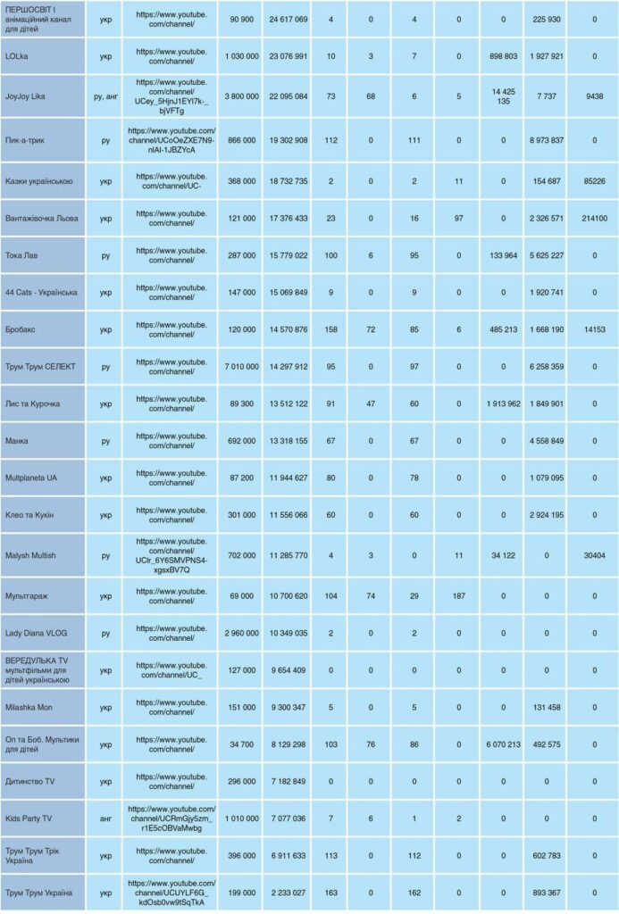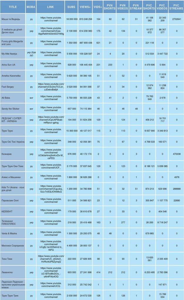 However, the top ten also includes other Russian-language channels or channels of questionable origin: Fast Sergey, Amelka Karamelka, Lady Bug and Supercat, Brobax, Plus Plus.