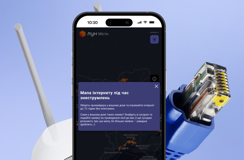 At first, the map was launched for providers in Kyiv, Kyiv, Lviv, and Odesa regions, but later it was scaled up to the entire country. It allows users to find providers that use xPON and other technologies, find out provider contacts, connection costs, the number of hours of Internet availability during blackouts, and more.