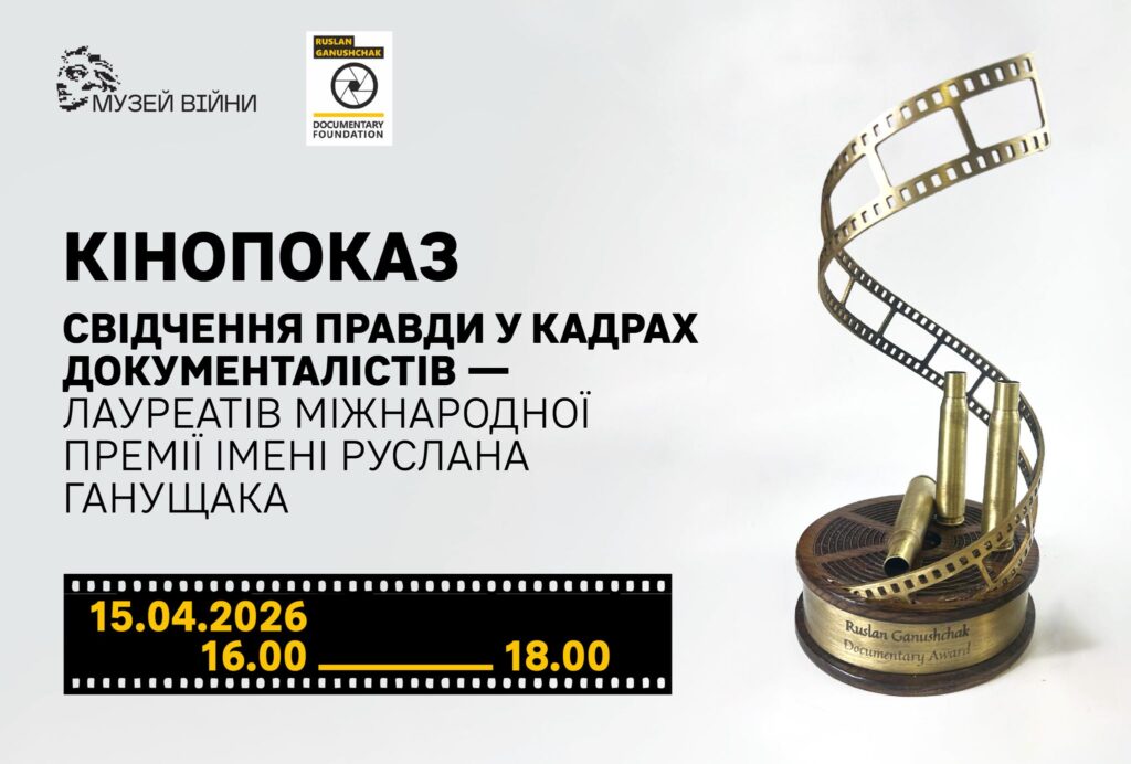 On April 15 at 4:00 p.m., the War Museum in Kyiv will host a screening of films by the winners of the Ruslan Hanushchak International Award, according to "Komersant Ukrainian"