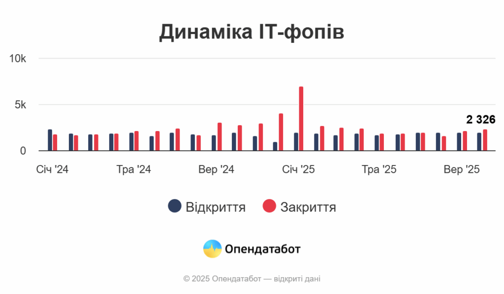 A new trend is emerging in the Ukrainian IT sector: since the beginning of the year, more IT entrepreneurs have closed their sole proprietorships than registered new ones. Over the ten months of 2024-2025, the industry lost 7,553 sole proprietorships, which is three times more than last year. This was reported by "Komersant Ukrainian" with reference to data from Opendatabot.