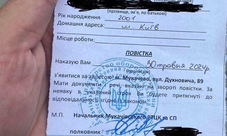 However, contrary to the law on mobilisation, employees of the Mukachevo TCC forced the 23-year-old driver to undergo a medical examination and handed him a summons to report to the military commissariat the next day.