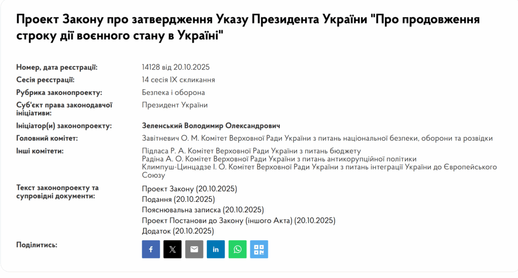 The period of mobilization and martial law will be extended from November 5 for 90 days. That is, until the first days of February 2026.