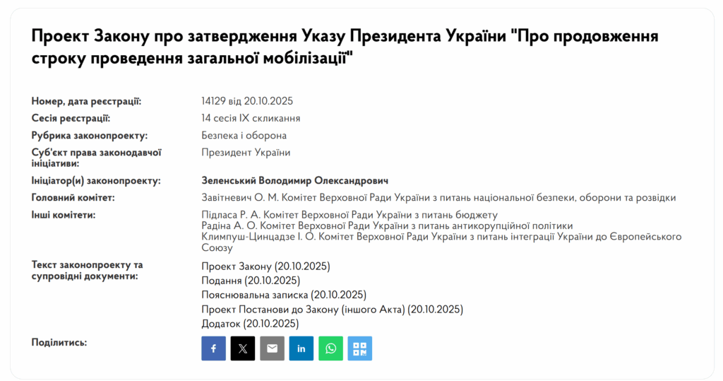 Draft laws on the extension of martial law and mobilization are regularly adopted before the expiration of the previous ones.