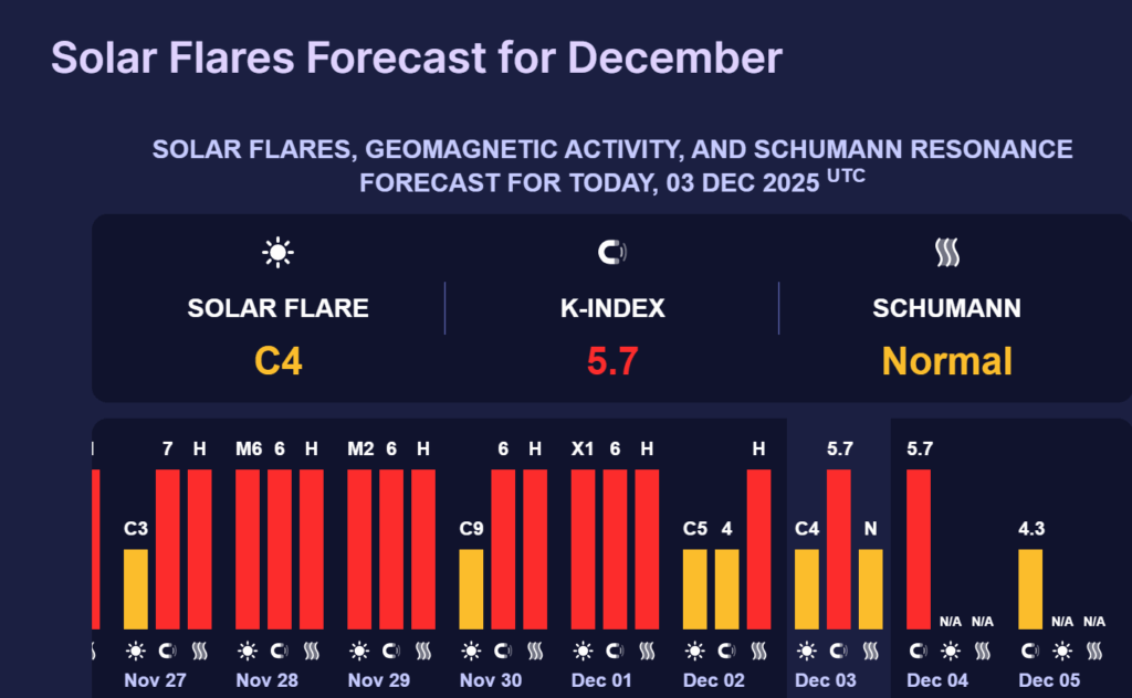 On Thursday, December 4, geomagnetic fluctuations are expected to be at a similar level and amount to 5.7 points.
