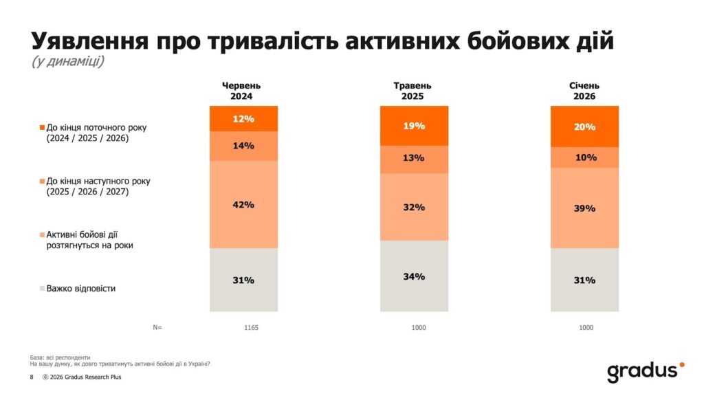 Проте, незважаючи на важку зиму і перспективу тривалої війни, значна частка респондентів зберігає оптимізм і очікує, що Україна внаслідок цієї війни стане сильнішою.