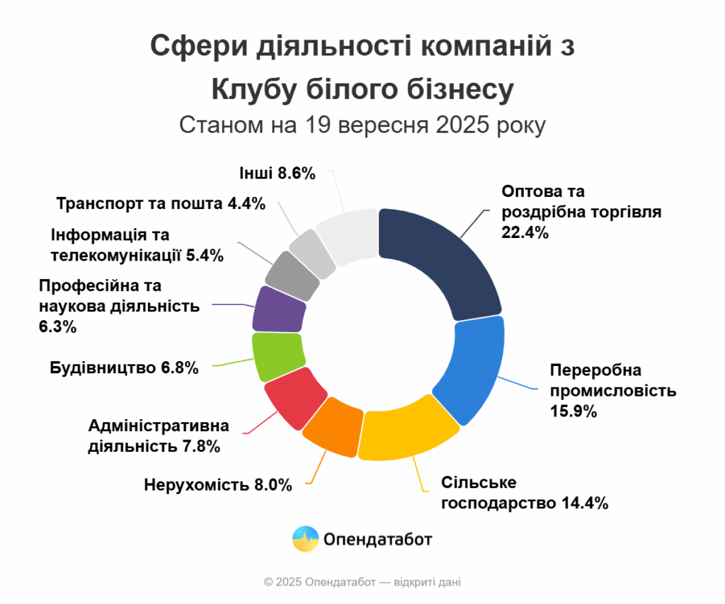 Сфери діяльності компаній з Клубу білого бізнесу: