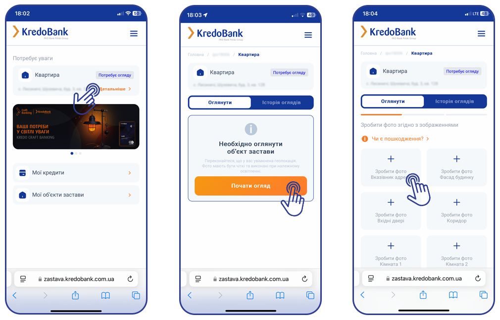 Сервіс дистанційного огляду заставного майна для бізнесу працює на базі порталу Кредобанку,який адаптовано під різні типи пристроїв.