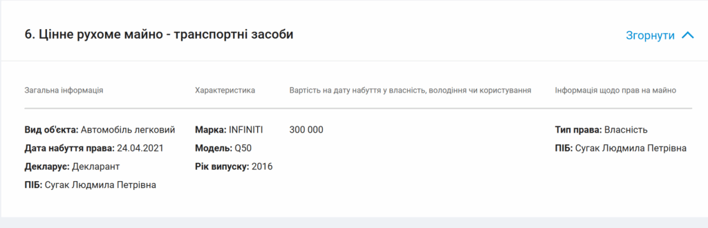 У березні 2025 року Людмила Сугак подала декларацію про свої доходи за минулий рік.