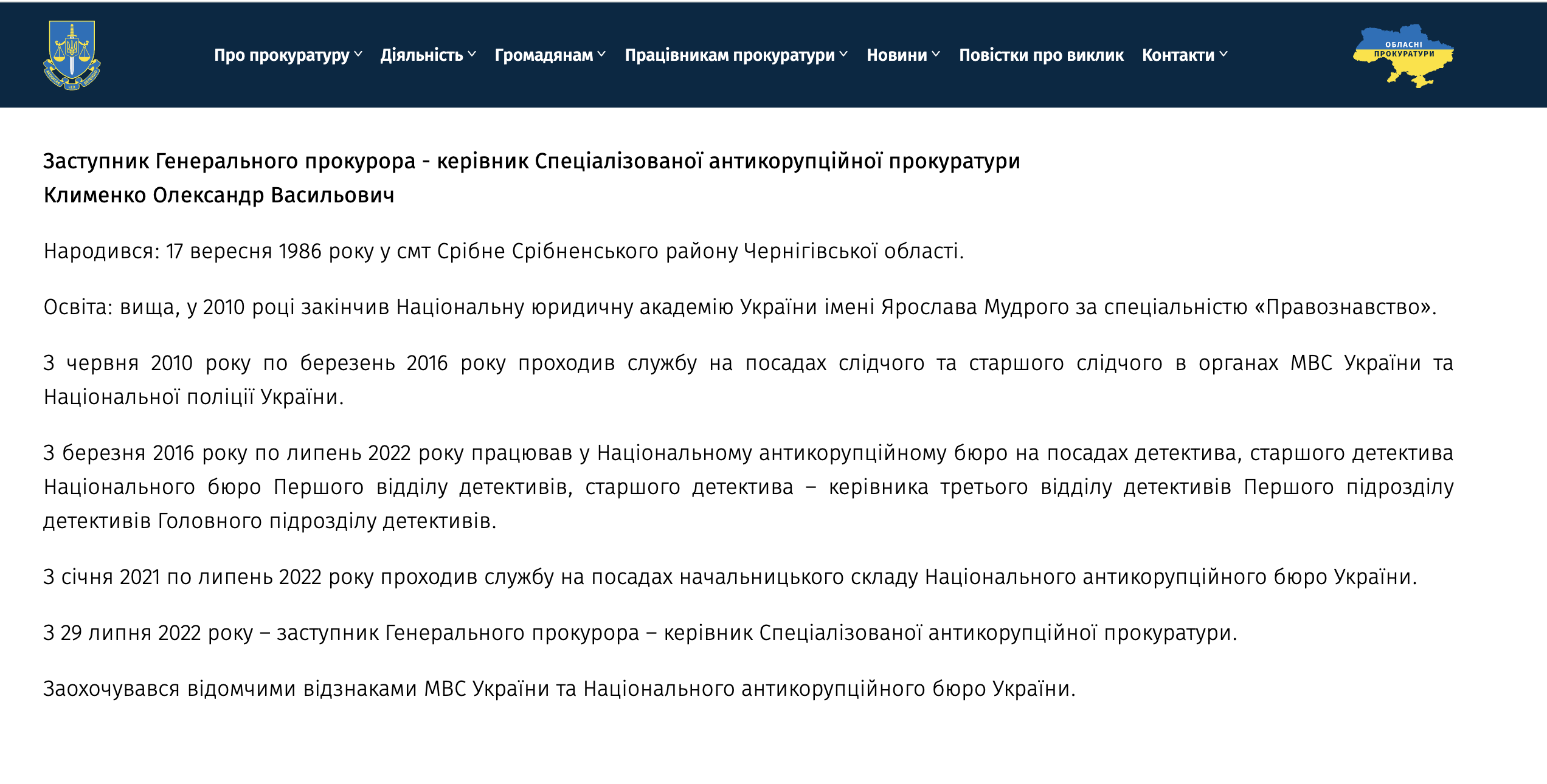 Нагадаємо, Олександра Клименко призначили на посаду керівника Спеціалізованої антикорупційної прокуратури у 2022 році. Раніше він працював детективом НАБУ.