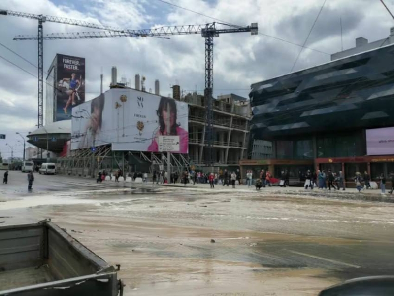 У центрі Києва біля торгового центру Ocean Plaza сьогодні вдень прорвало трубопровід. В результаті затопило цілу вулицю, на дорогах виникли затори. Фото та віде…