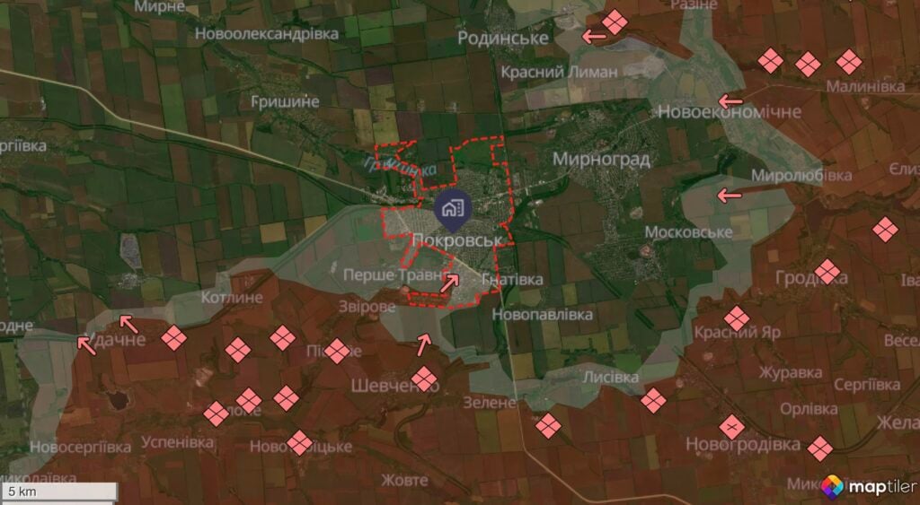 Українські джерела підтверджують, що у Покровську точаться стрілецькі бої з групами противника, які намагаються просочитися в місто. Проте Генштаб наголошує: жодного району окупанти повністю не контролюють, а ЗСУ продовжують утримувати оборону та проводити зачистки.