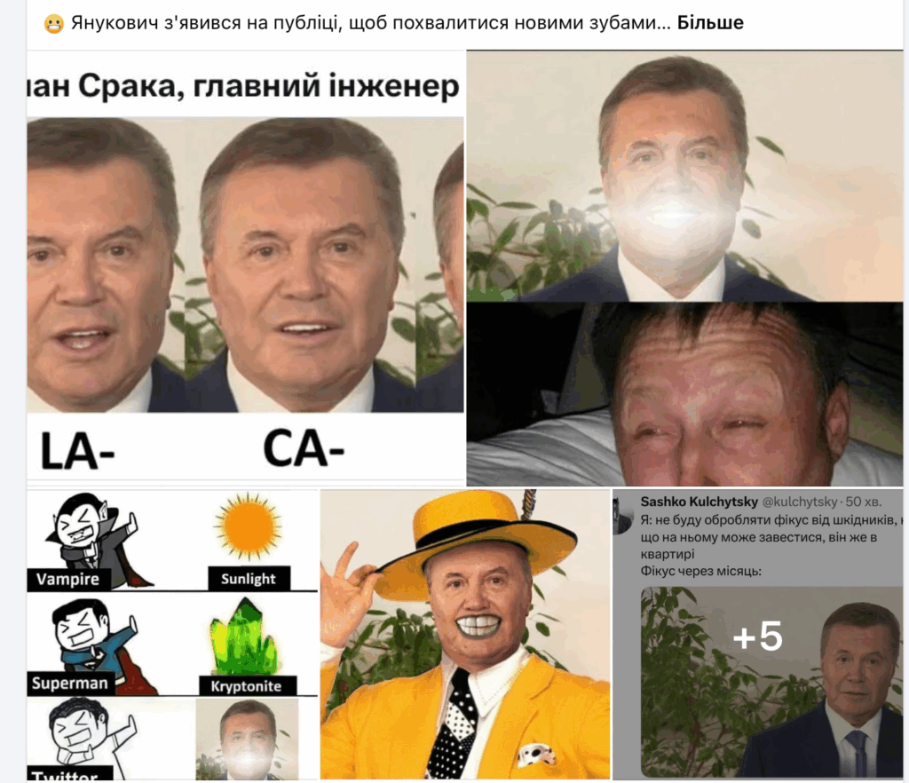«Янукович знов встав з труни. З новими зубами, які в морзі вставляють в рота, щоб губи не провалилися. Євроінтегратор.»