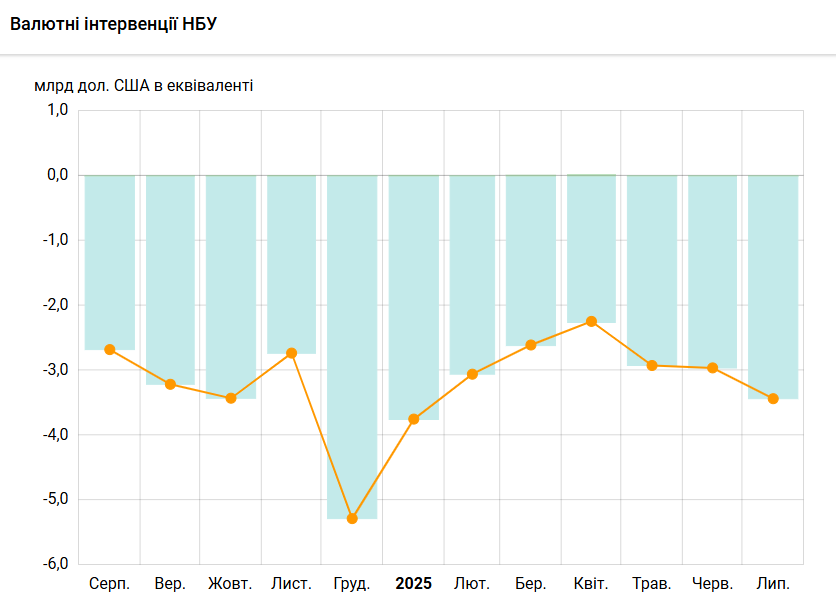 Варто зазначити, що від початку 2025 року НБУ майже виключно продає валюту, викуповуючи мінімальні обсяги. Станом на кінець серпня регулятор продав на міжбанку вже близько $22,77 млрд, тоді як купив лише близько $37,8 млн.