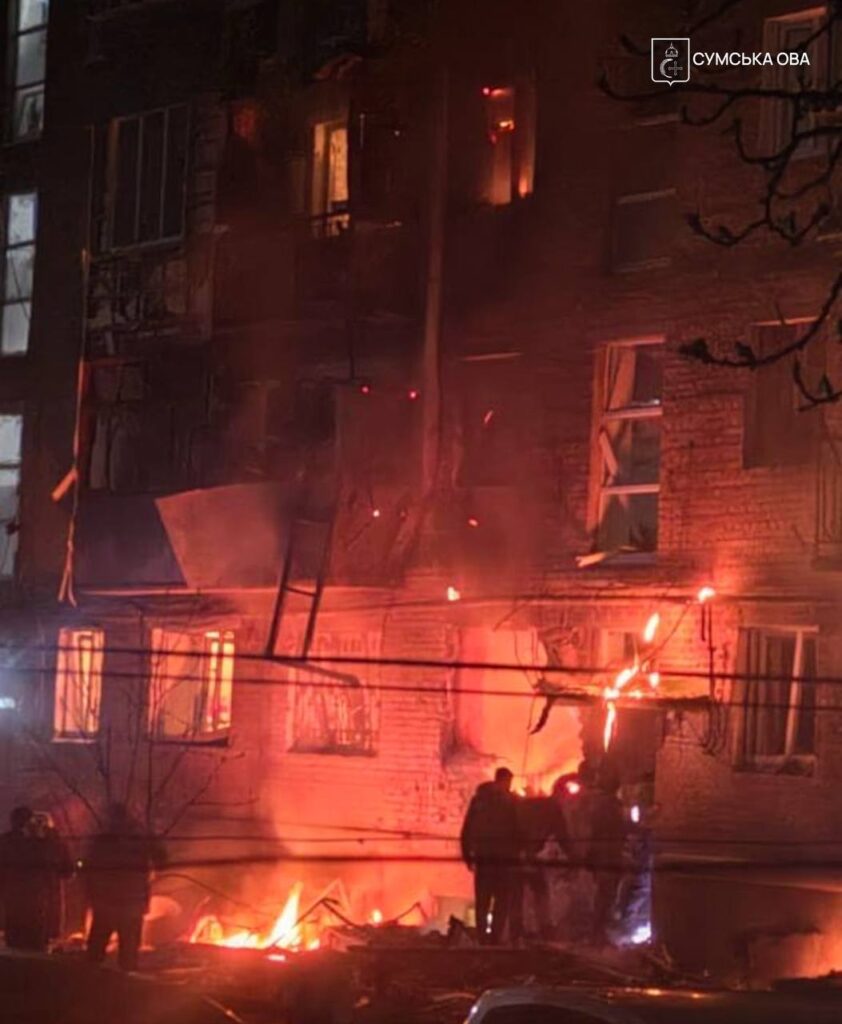 Увечері 10 квітня російські безпілотники двічі атакували житлові багатоповерхівки у Сумах. Внаслідок ударів пошкоджено щонайменше дві п’ятиповерхівки, виникла пожежа, а серед мирних жителів є постраждалі. Про це повідомив голова Сумської обласної військової адміністрації Олег Григоров, інформує «Комерсант Український»