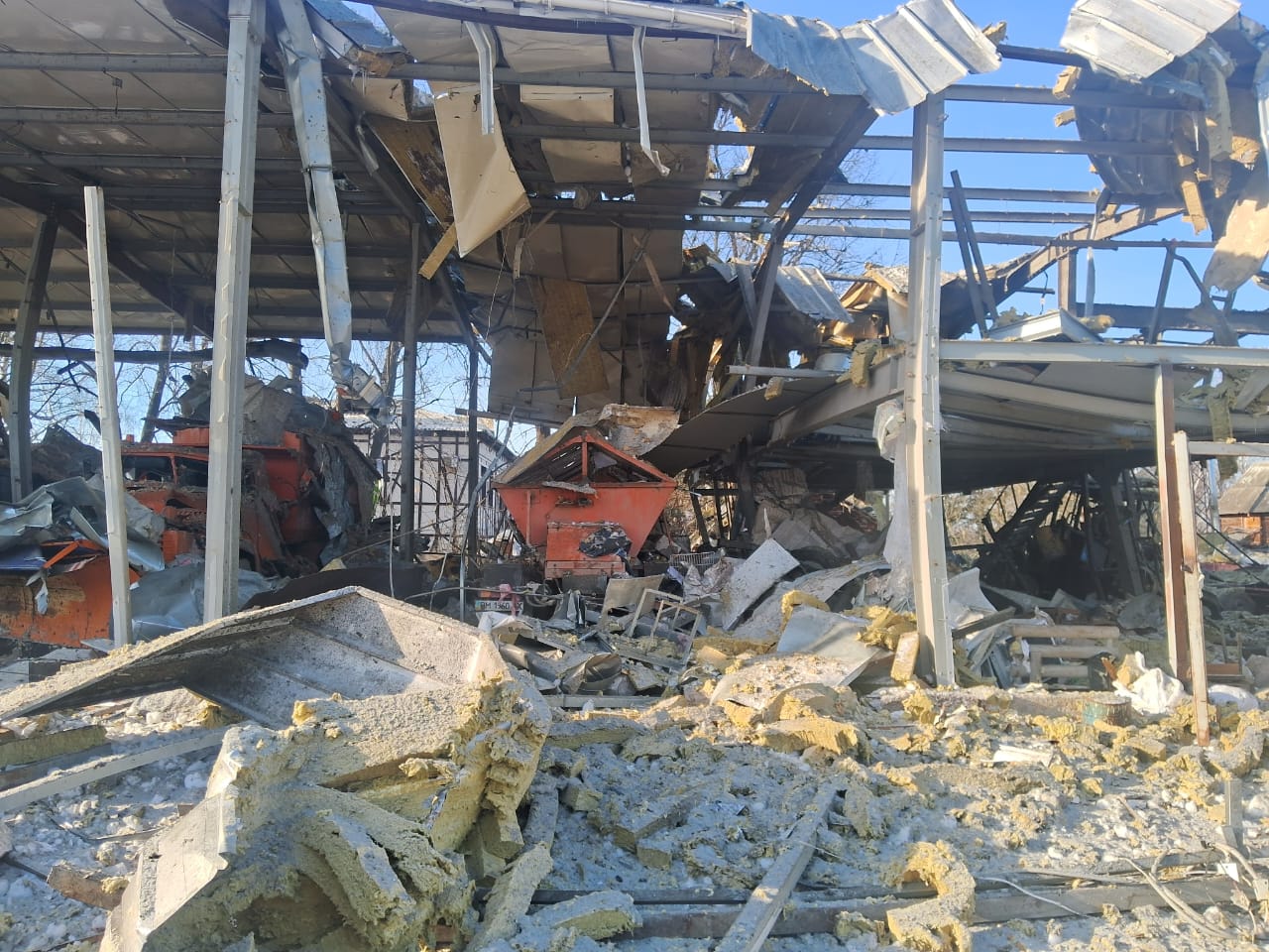 Зруйновано виробничі та адміністративні приміщення, знищена спеціалізована дорожня техніка та механізми.