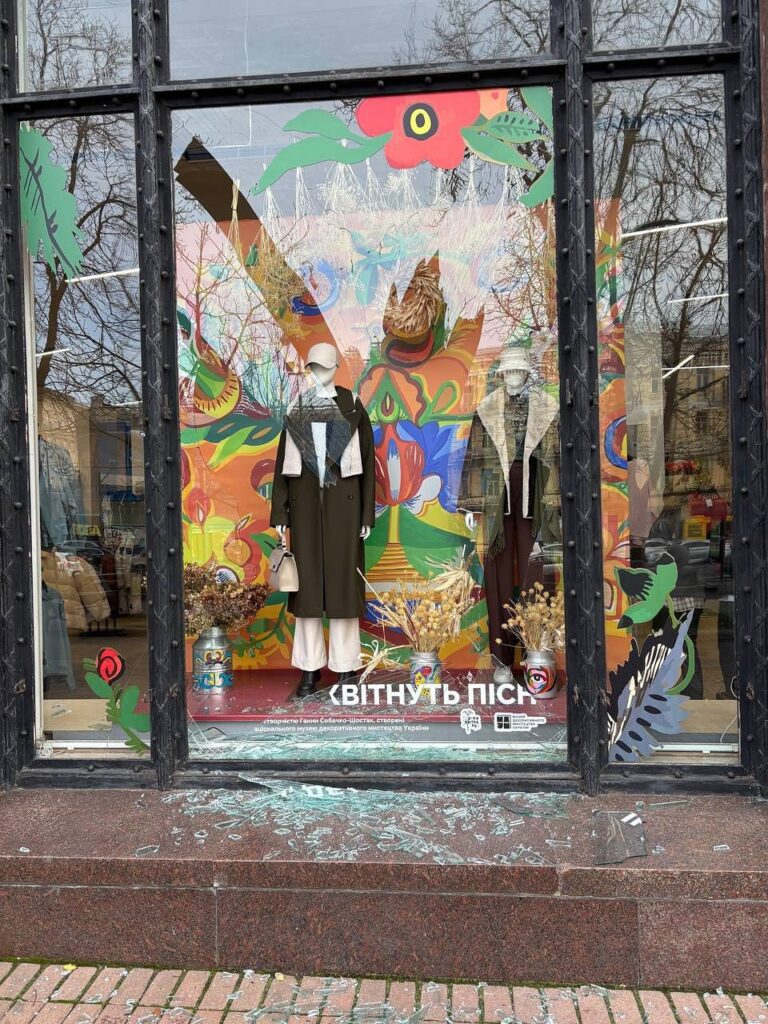 Росіяни потрощили унікальні розписи вітрини магазину українських брендів “Всі. Свої”: деталі
