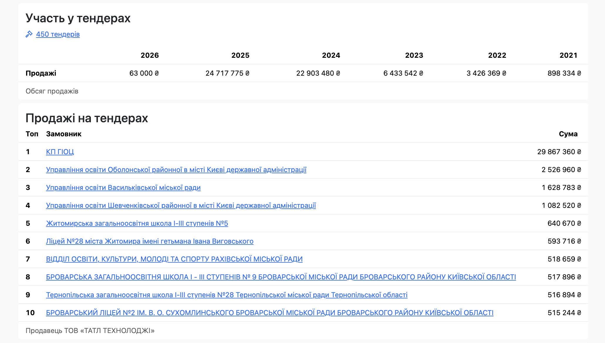 Загалом TATL Technology фігурує більш ніж у 450 тендерах.