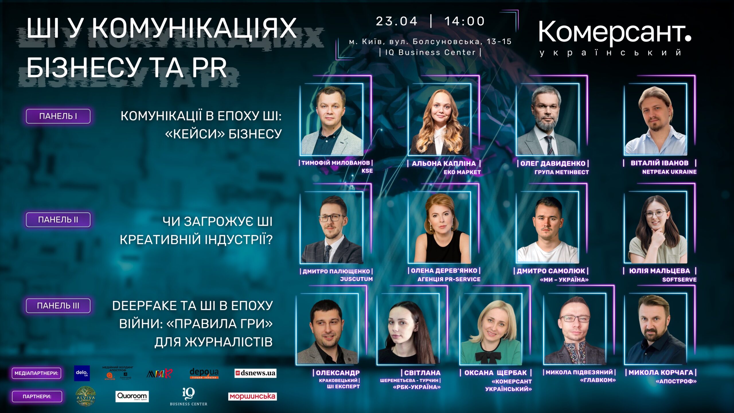 Дискуссионная панель от Коммерсант украинский на тему: ИИ в коммуникациях бизнеса и PR В чем преимущества и где кроются скрытые угрозы Когда:…