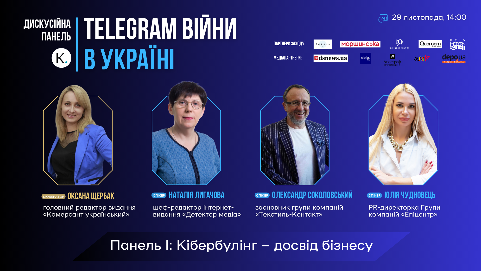 Мероприятие от издания Коммерсант украинский на тему"TЕLEGRAM ВОЙНЫ в Украине: Как пережить кибербуллинг и сохранить компанию. Истории бизнеса и позиция госуда…