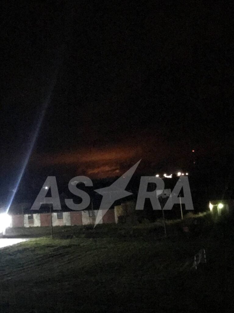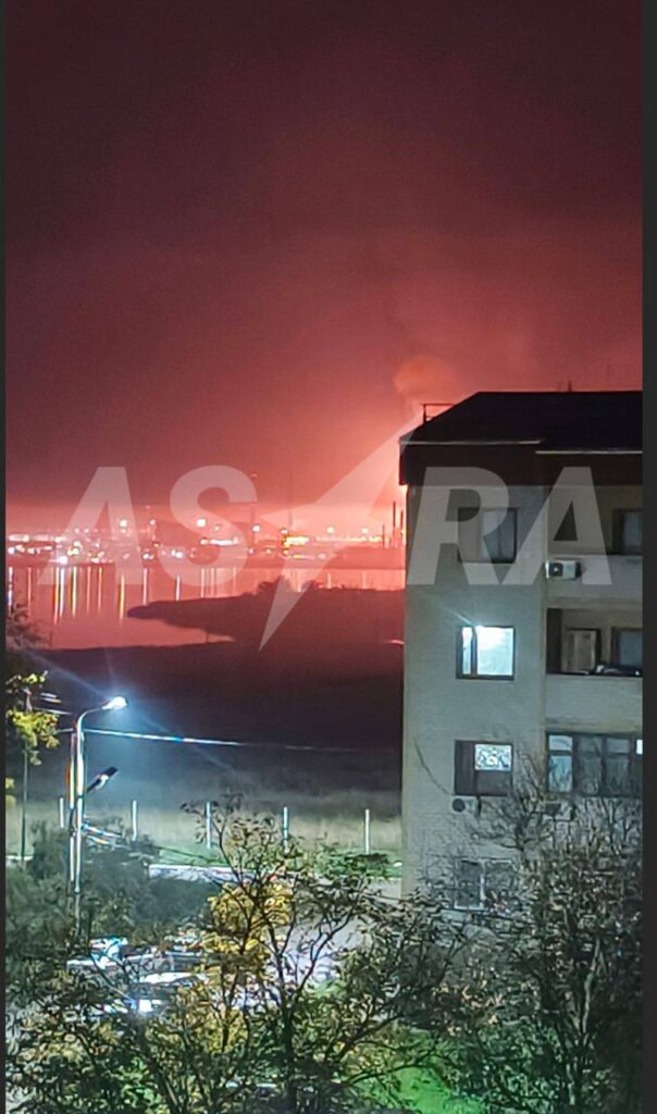 На обнародованных фото видно огненное зарево — вероятно, попадание по объекту инфраструктуры или складу горючего.