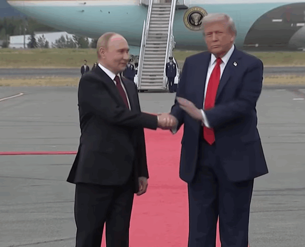 Напомним, церемония встречи диктатора РФ Путина и американского президента Дональда Трампа включала красную дорожку, почетный караул и военные самолеты в небе.
