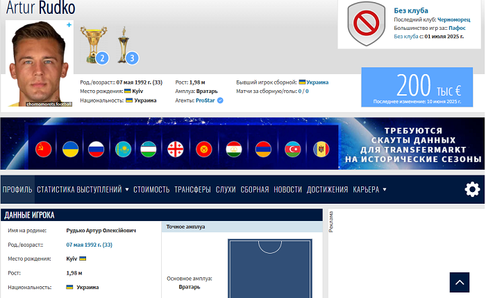 Бывшим клубом вратаря был «Черноморец», из которого он ушел в конце прошлого сезона.