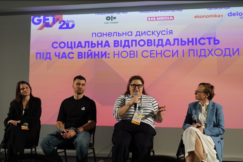 Панельная дискуссия «Социальная ответственность во время войны: новые смыслы и подходы» осветила трансформацию роли компаний в поддержке людей и общин во время войны. Модератор О. Рудюк (American University Kyiv) вместе со спикерами Я. Гончаренко (Starlight Media), А. Шуваловым (Благотворительный фонд Сергея Притулы) и А. Джагарян (L’Oréal Украина) обсудили, как бизнесы сочетают коммерческие цели с устойчивым социальным влиянием.