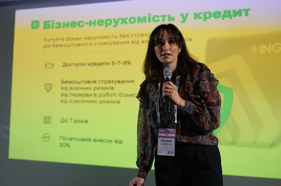 На сцене бизнес-развития О. Солодчук(Банк «Кредит Днепр») поделилась практическими советами по финансированию для МСБ: