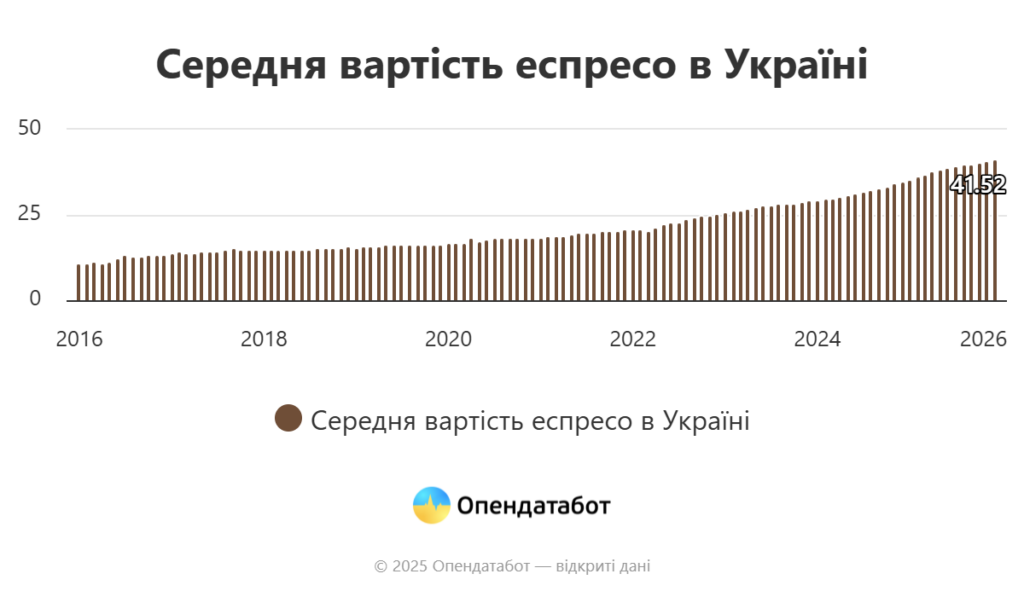 Таким образом, с 2017 года чашка эспрессо подорожала почти втрое, а с начала полномасштабной войны — почти вдвое.