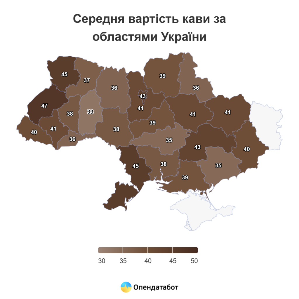 Самый высокий годовой темп роста цен зафиксирован на Сумщине — 26%. Несмотря на это, средняя стоимость эспрессо в регионе составляет 36 гривен, что все еще ниже общеукраинского показателя. Еще в прошлом году Сумщина входила в перечень регионов с самым дешевым кофе.
