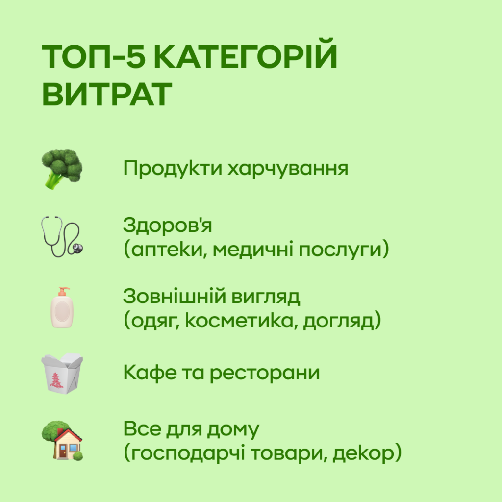 Самая большая статья расходов — еда. В 2025 году украинцы потратили на продукты 551,6 млрд грн, что составляет 42,4% всех безналичных платежей.