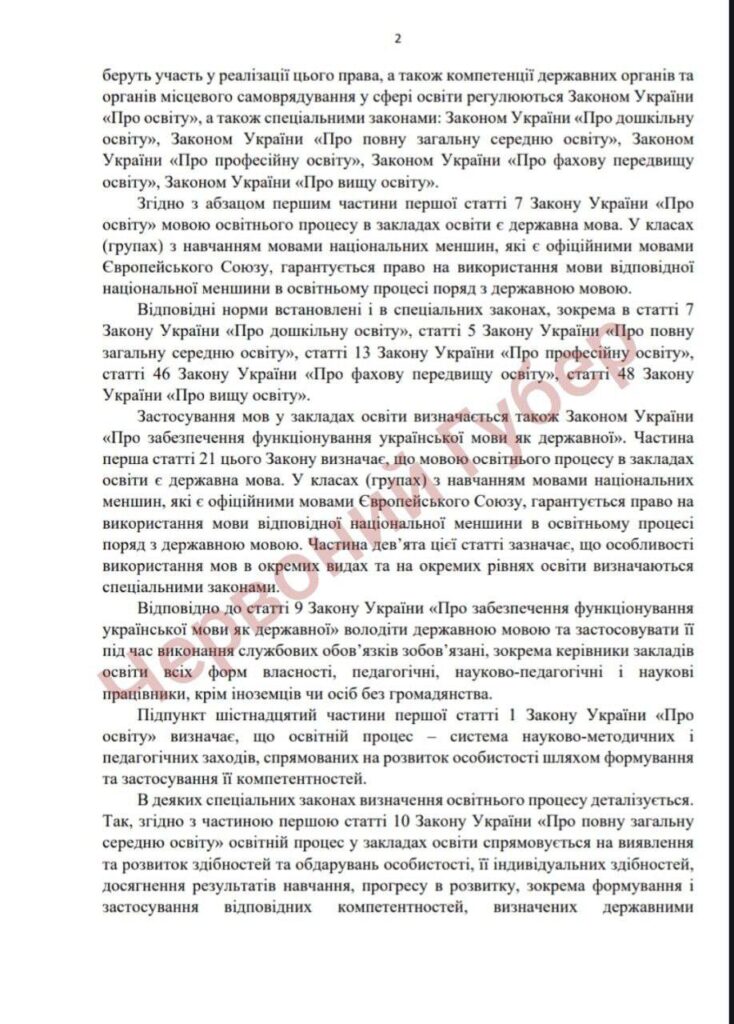 Министерство образования и науки Украины предоставило официальные разъяснения по применению государственного языка в образовательном процессе. Документ уточняет обязанности педагогов, ученых и руководителей учебных заведений, а также определяет исключения и особенности использования других языков. Документ опубликован в Facebook общественной организации «Красный губер», сообщает «Коммерсант Украинский»